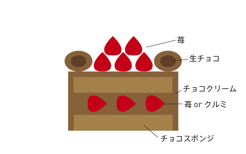 ご予約でおつくりする場合のみ、間の苺サンドをクルミサンドに変更する事が可能です。